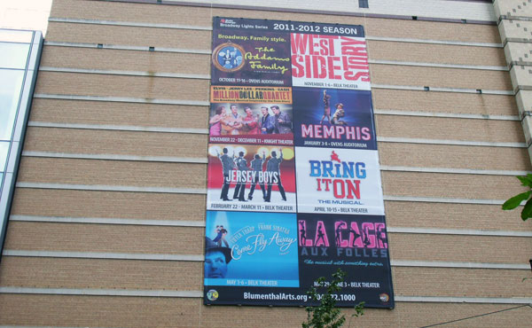 In the past, Blumenthal Performing Art Center had installed large-format (800 square feet) vinyl banners on its building by attaching them with screws drilled directly into the facade. However, they wanted a solution where banners could be installed without continually damaging the building exterior, while providing a clean look for each banner.