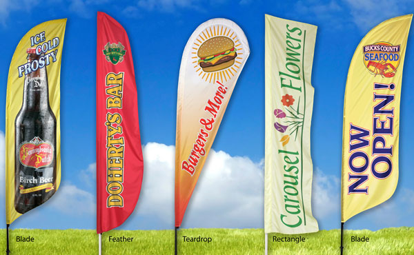 These flags come in a blade, feather, teardrop or a rectangle shape. Call our customer service representatives to specify which style you prefer.